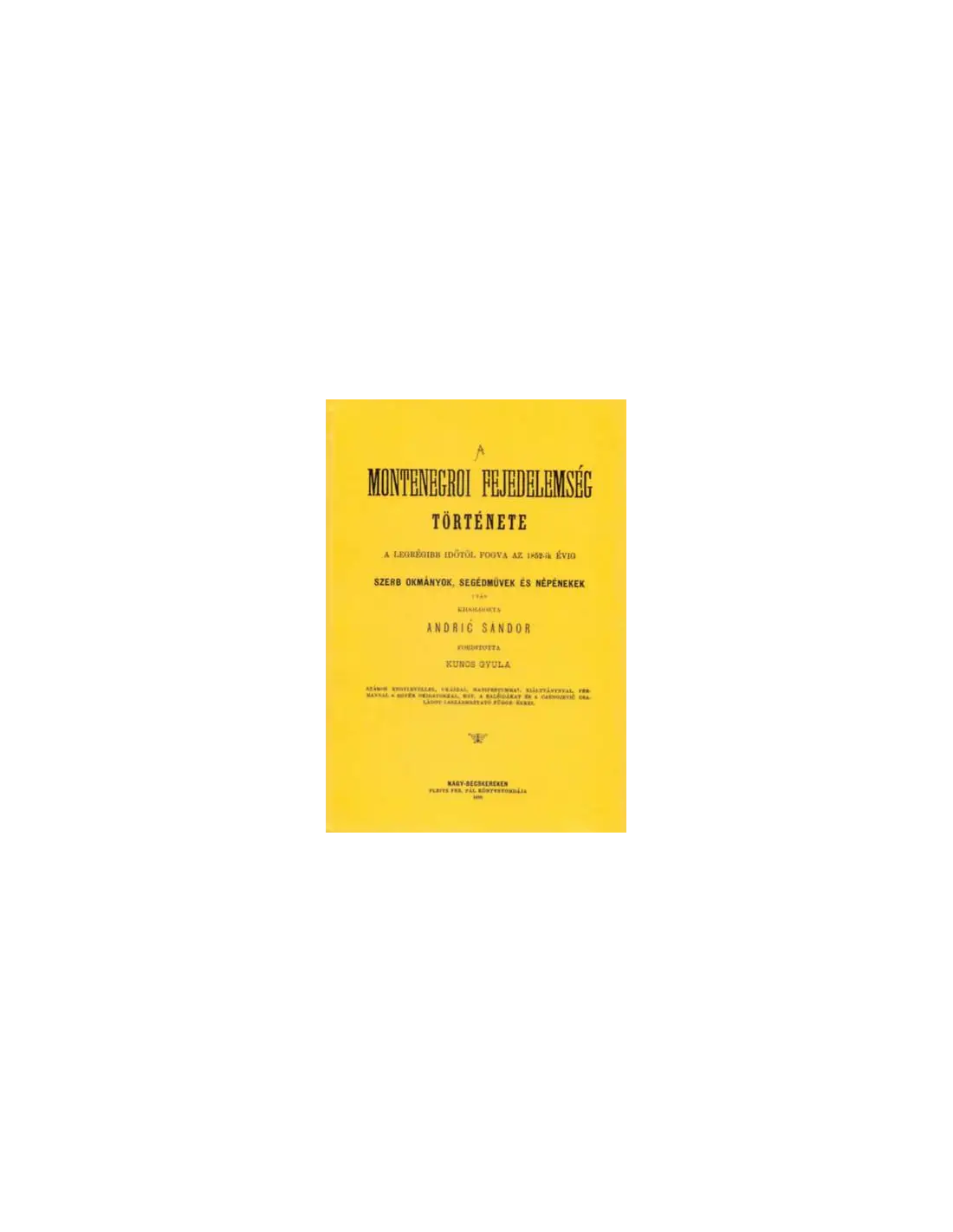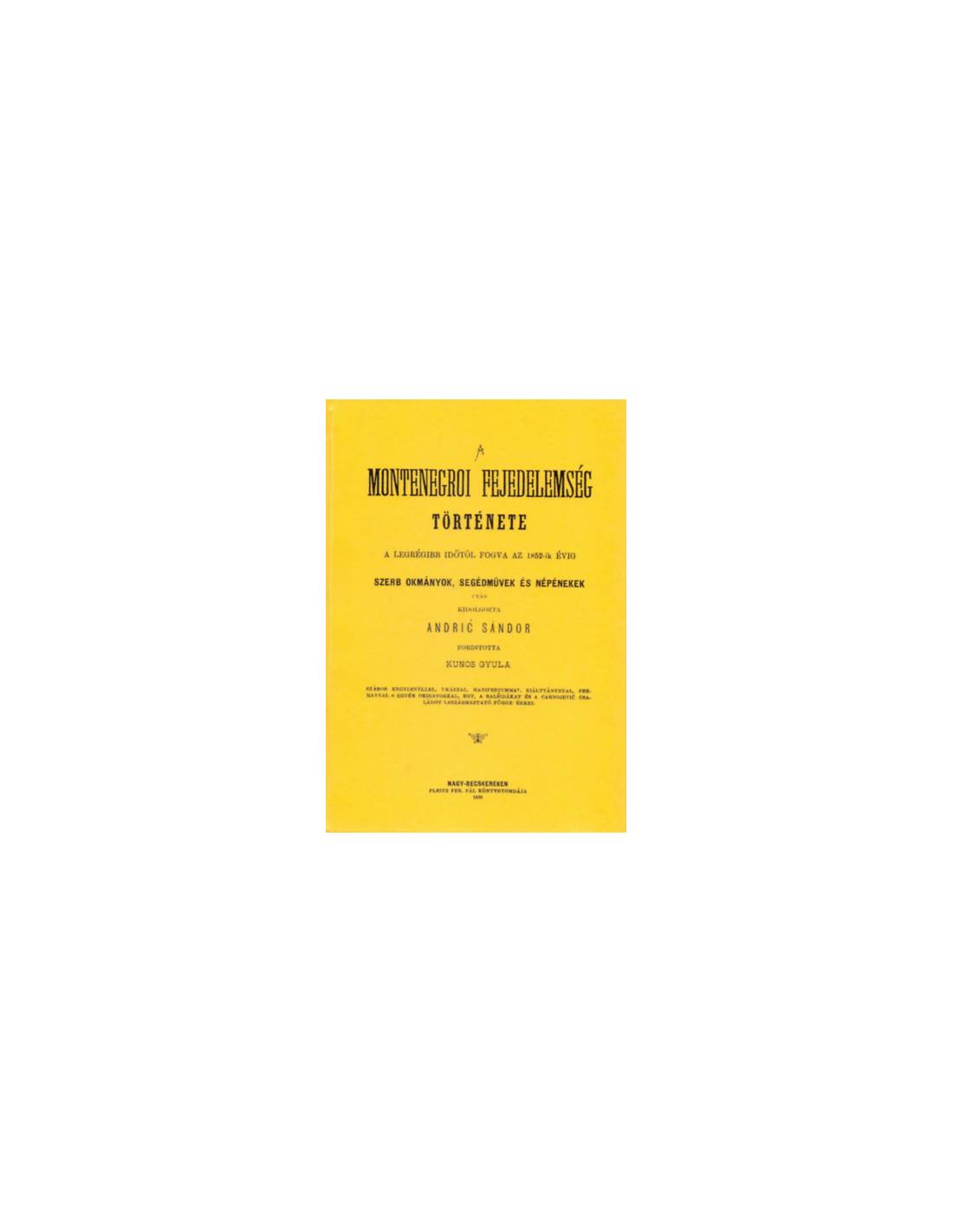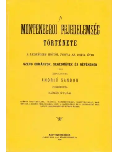 Andric Sándor munkája magyar fordításban a montenegrói fejedelemség történetéről az ősidőktől a szerző koráig.