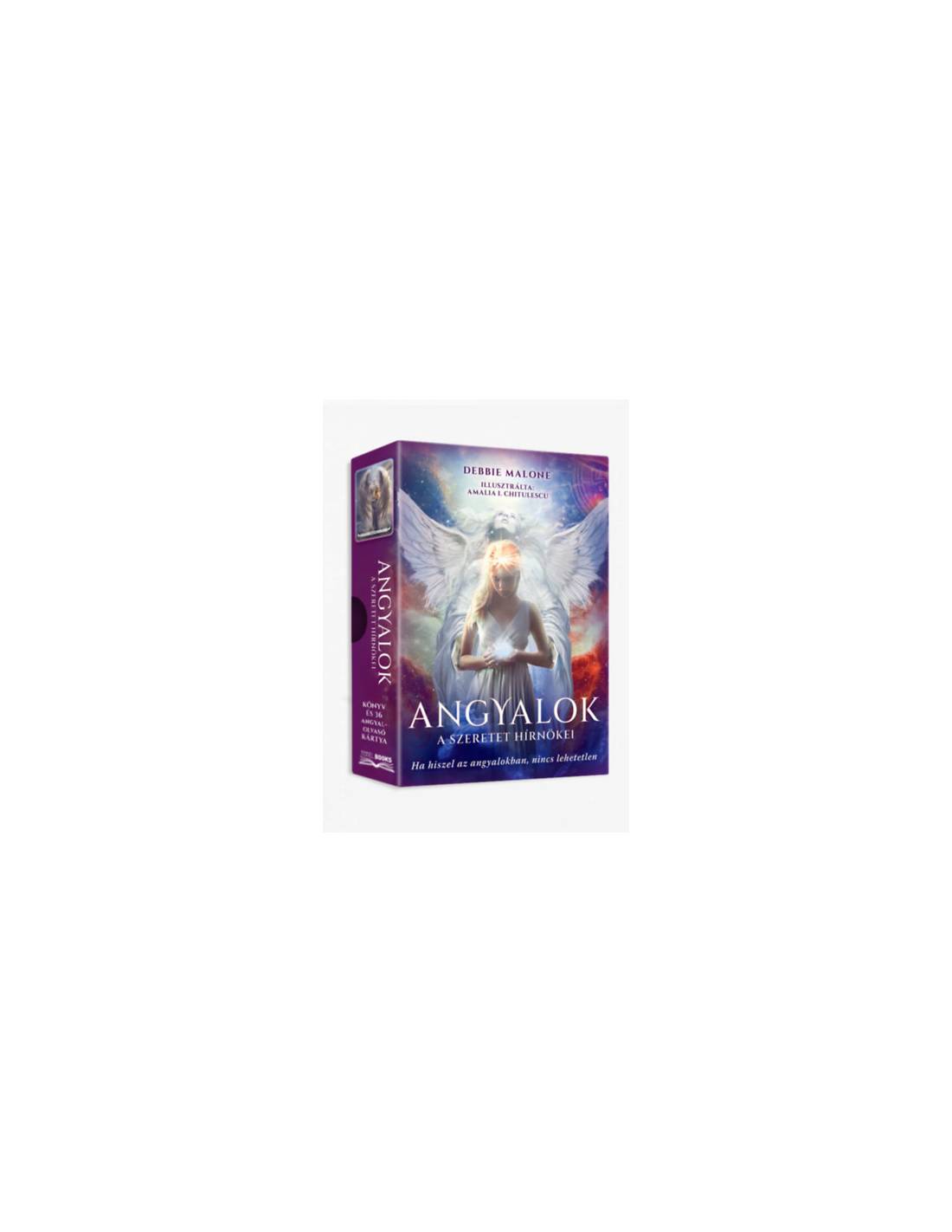 Debbiel Malone spirituális tanító könyvében gyönyörű angyalgyűjteményt tár elénk. Nem konkrét név szerint ismerhetjük meg a szeretet hírnökeit, hanem angyali minőségük szerint. Megnyugtató tudni, hogy soha nem vagyunk egyedül, angyalaink végigkísérnek minket az életünkön és mindig készen állnak arra, hogy segítsenek. Segítségükkel bármilyen élethelyzettel megbirkózhatunk, legyen szó az utazásról, a termékenységről, a karrierről, az egészségről vagy a belső békéről. A dobozban található könyvből megtudhatjuk, hogyan szólíthatjuk meg angyalainkat és hogyan kérhetjük a segítségüket. Nemcsak a mély lelki folyamatokban, a megbocsátásban vagy a türelemben kaphatunk támaszt, hanem a teljesen hétköznapi helyzetekben is, mint a kreativitás, az utazás vagy a parkolás segítése.