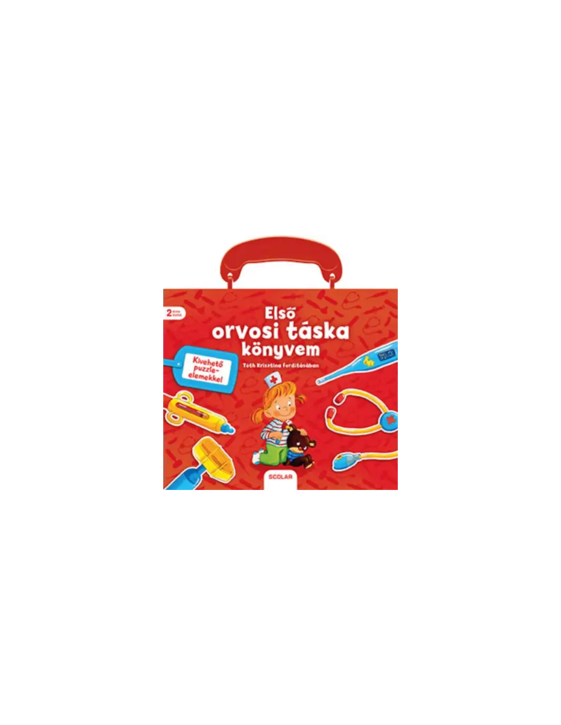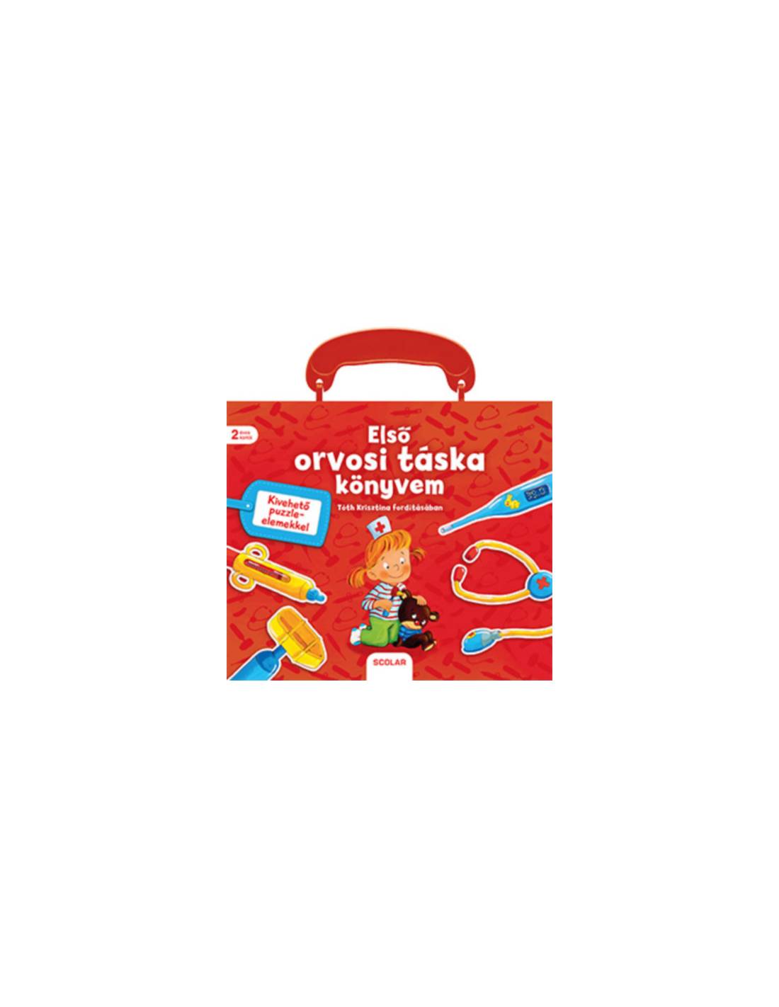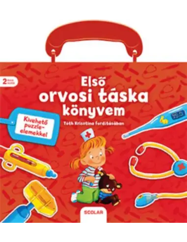 Minden gyermek szeret "orvososat" játszani, a legkisebbek is; minden gyerek szeret mesét hallgatni; minden gyerek szeret képeskönyvet nézegetni; és minden gyerek szeret puzzle-t játszani. Most végre itt az első igazi orvositáska-könyv, mely egyesíti magában a nézegetős-verselős mesekönyvet, a játék orvosi táskát, az "orvosos-gyógyítós játékot" és a puzzle-t! Az orvosi táska formáját idéző, táskaszerű füllel ellátott, meglepetés puzzle-elemeket (a doktor bácsi, doktor néni gyógyító eszközeit, pl. papír játék lázmérőt) tartalmazó könyv szövegét Tóth Krisztina magyarításában olvashatjuk. Egy jó meseolvasás után pedig "meggyógyítható" akár az otthoni alvóállat is - s ha már minden kis kedvencet meggyógyítottunk, jöhet a rendrakás: az orvosi eszközök helyének megtalálása és helyére illesztése.