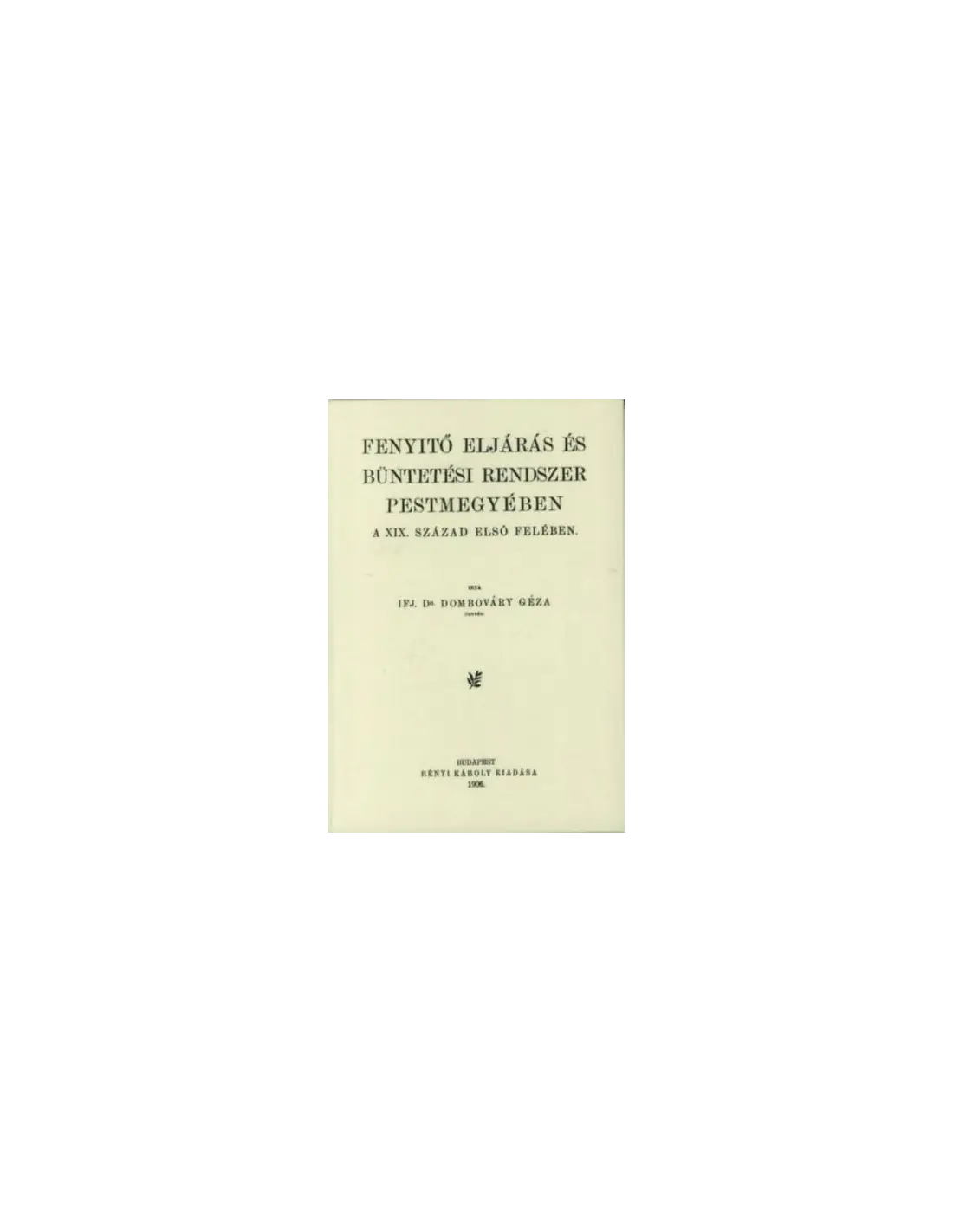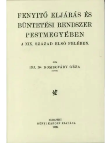 Fenyitő (fenyítő) eljárás és büntetési rendszer Pestmegyében a XIX. század első felében