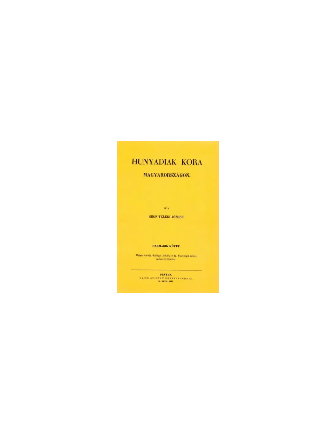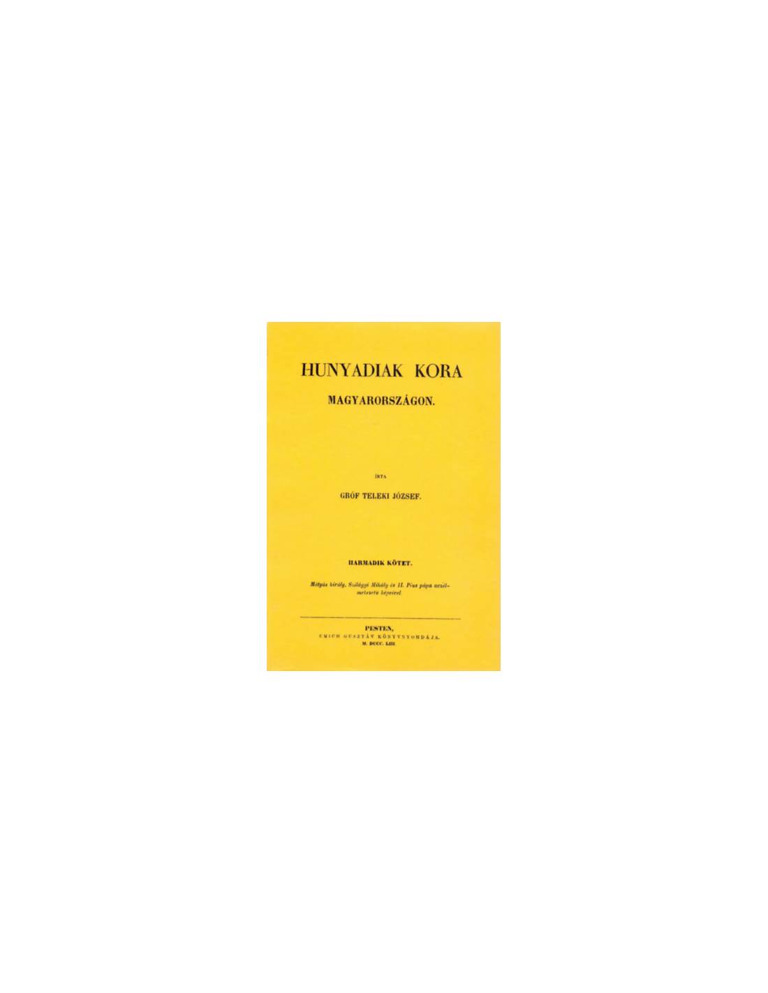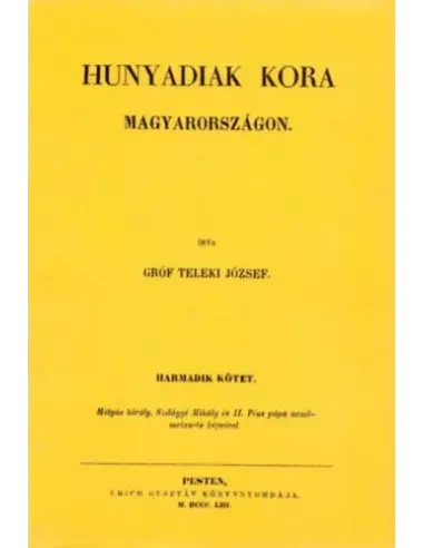 Teleki József monumentális művének első öt kötete a kor politikatörténeti összegzése Albert uralkodásának kezdetétől (1438) egészen Hunyadi Mátyás haláláig (1490). A X-XII. kötetek a témához kapcsolódó fontos dokumentumok okmánytára.