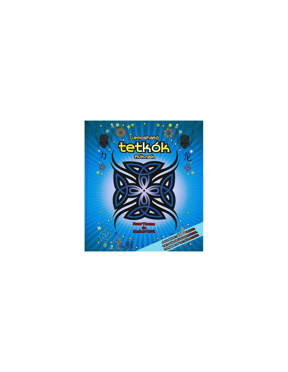 A melléklet száz igen jó minőségű, sokáig megmaradó tetoválásmatricát tartalmaz, a tíz legnépszerűbb stílusban. Választhatsz törzsi vagy goth mintát, esetleg strandra valót. Áélvezni fogod a tetoválási stílusok leírását, magyarázatát; megtudhatod, mi az egyes ábrák jelentése. Ez a színes fotókkal és rajzokkal illusztrált könyv bevezetés a tűmentes testdíszítés művészetébe.