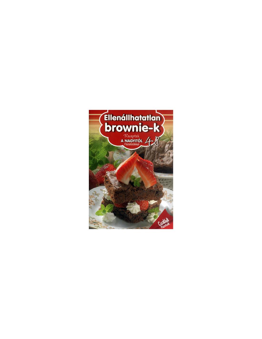 Egyre többen imádják Magyarországon is Amerika kedvencét! Elkészítése gyors és egyszerű, a variációk lehetősége pedig kimeríthetetlen! Ebben a receptfüzetben 15 különböző brownie elkészítését találjátok meg, pontos leírásokkal, fázisfotókkal. Fehér csokis-kávés brownie, csupa csokis brownie mascarponehabbal, brownie torta dióhabbal - hamar a család kedvenceivé fognak válni! A receptkönyv gluténmentes, cukormentes és laktózmentes brownie recepteket is tartalmaz.